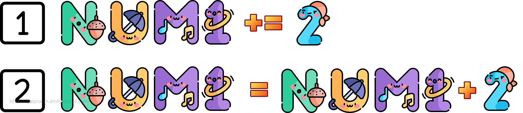 num1 += 2 를 풀어서 표현하면 num1 = num1 + 2 입니다.