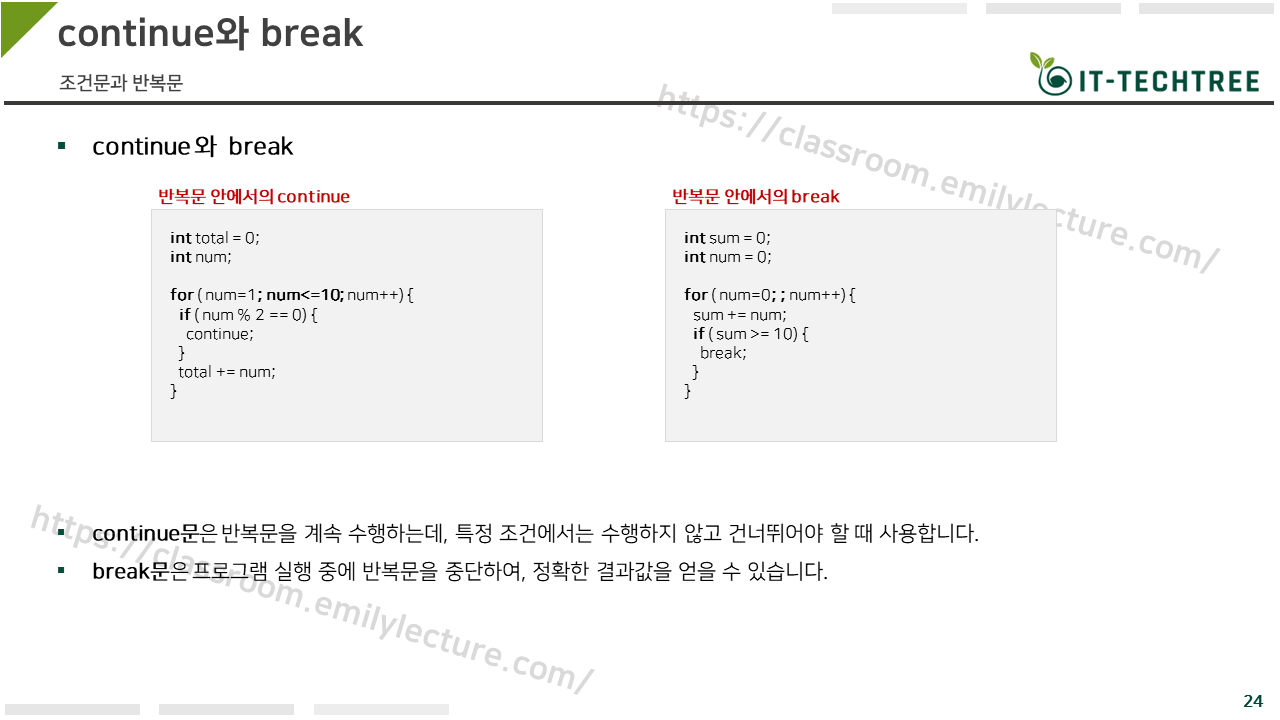 반복문을 조절할 수 있는 continue와 break도 살펴볼까요?