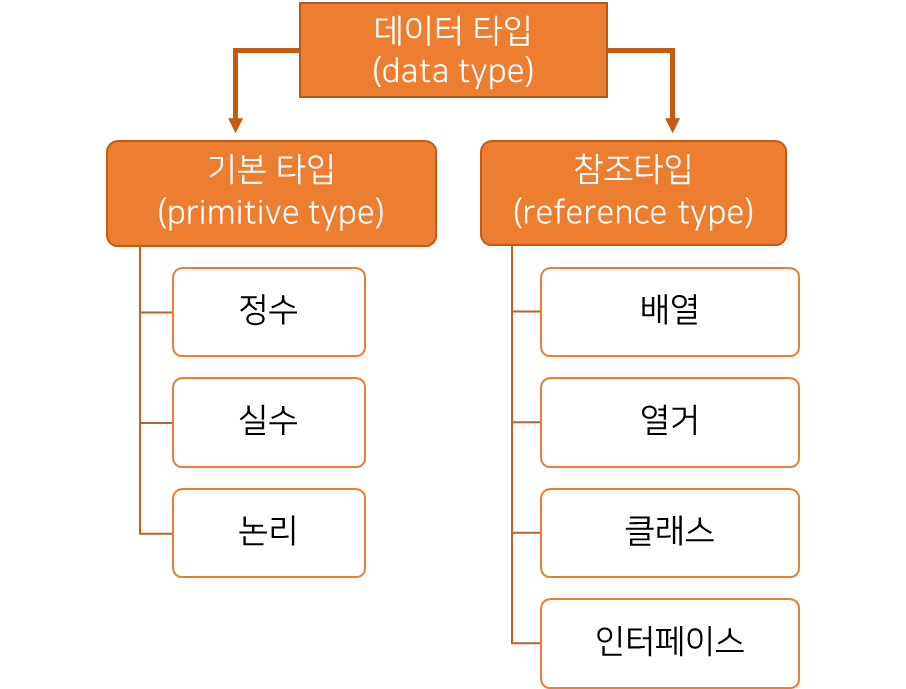 오른쪽에 있는 참조타입(reference type)은 아직 언급되지 않는 것들이긴 합니다.