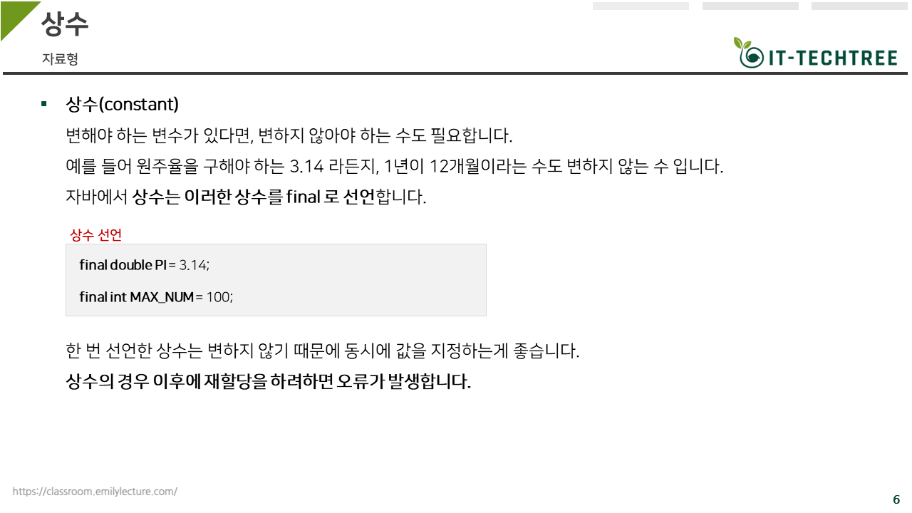 자바에서는 구분 짓기 위해 선언된 변수 앞에 final을 붙여줍니다.